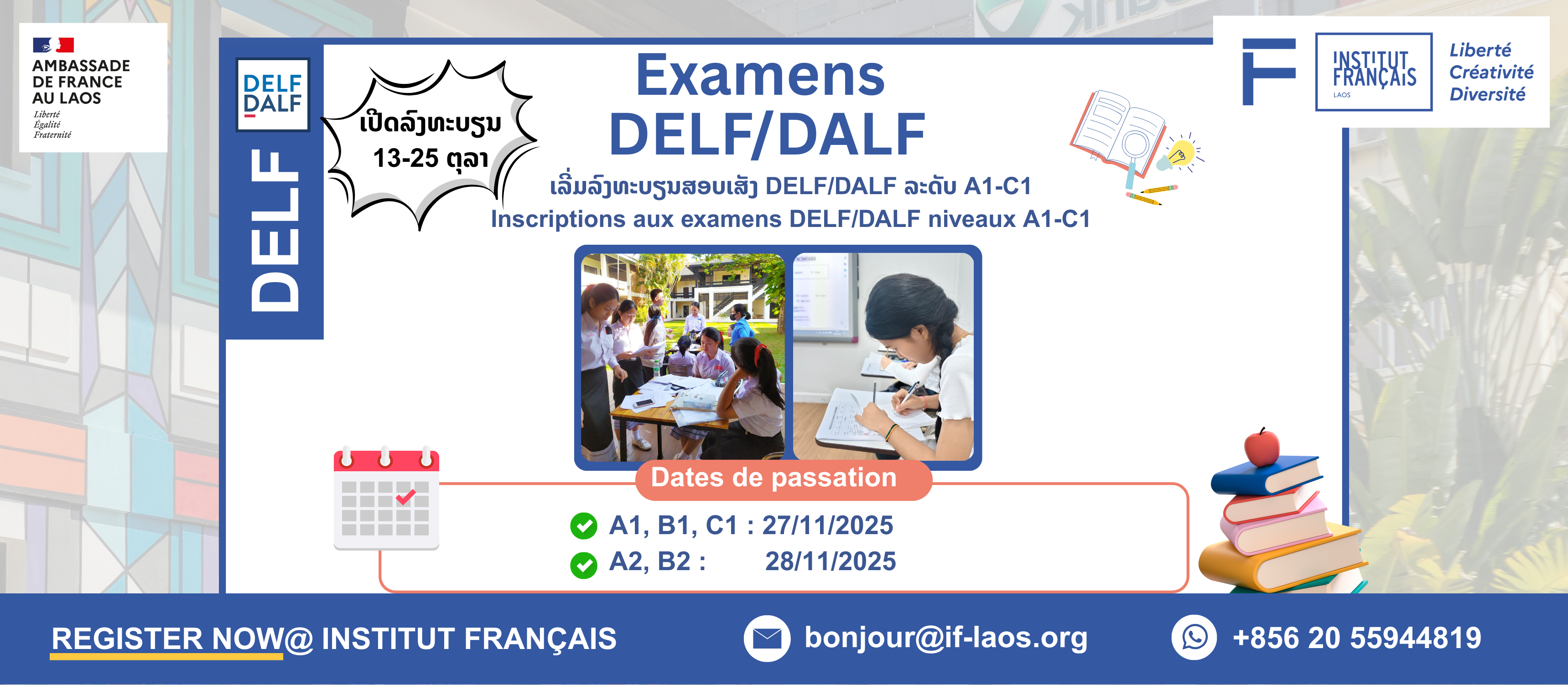 ເປີດລົງທະບຽນການສອບເສັງ DELF/DALF !